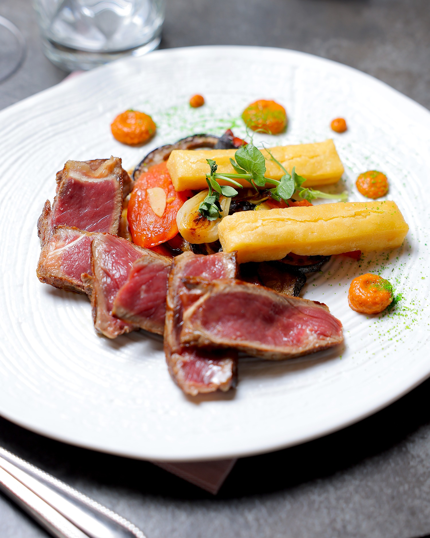 La pièce de cochon catalan Tirabuixo grillée, tatin d’endive,